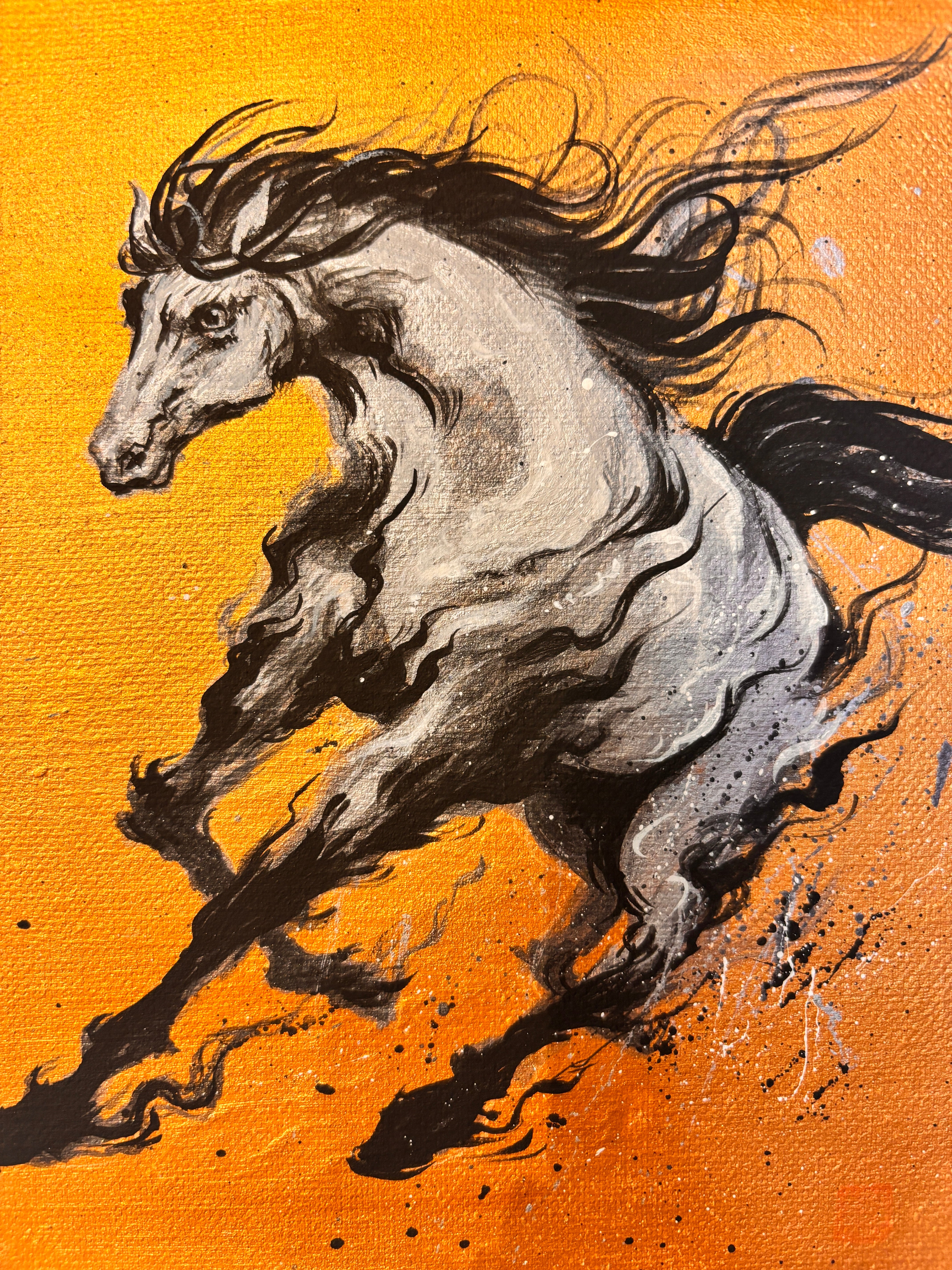 chambersAK氏が描き下ろした一点物の作品です。力強く駆ける馬の姿が、躍動と吉兆を感じさせます。