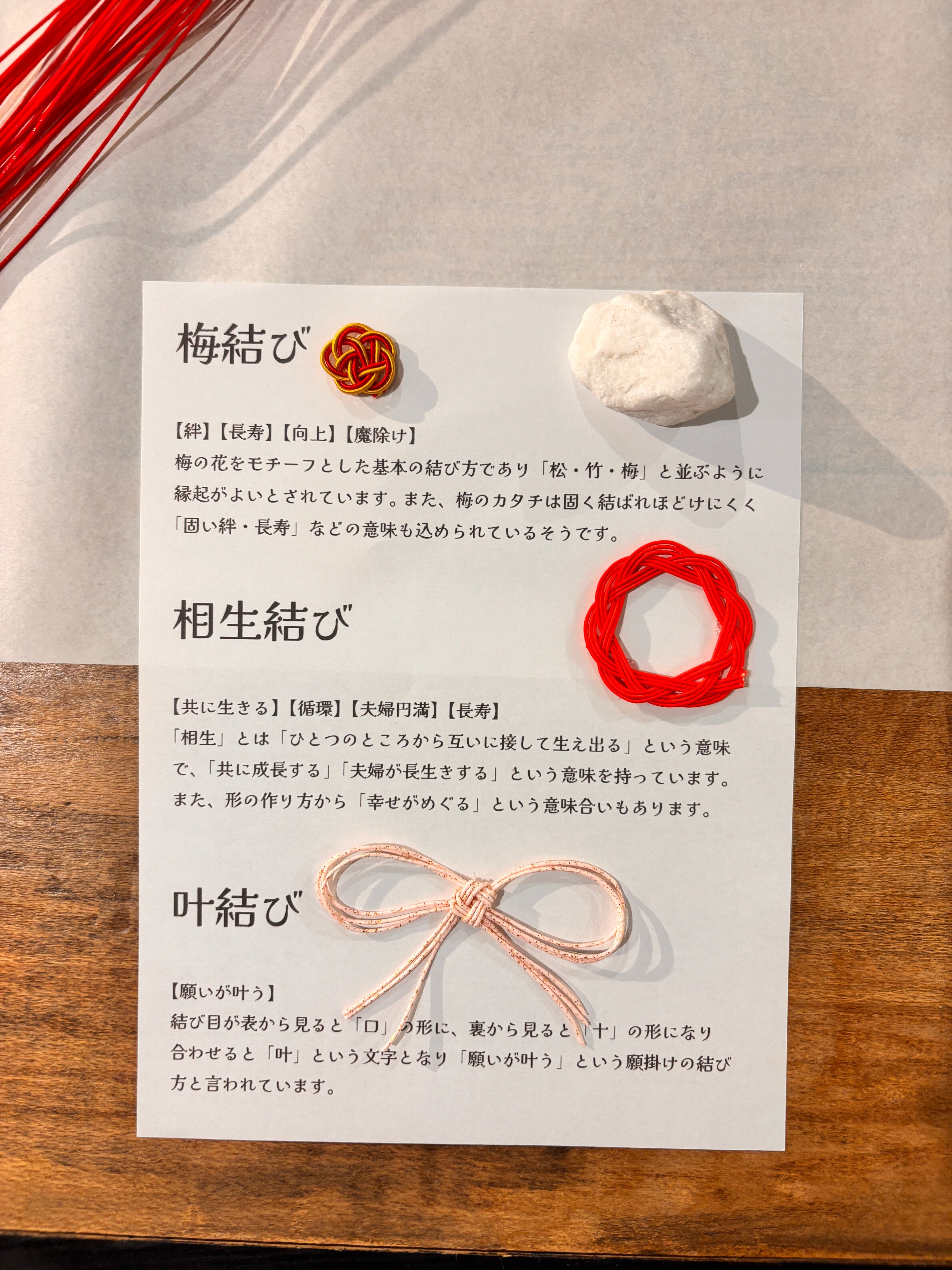 そして、厳しい冬を越えて最初に咲く、出世・開運・厄除けの意味をもつ《梅の花》の水引きをあしらいました。