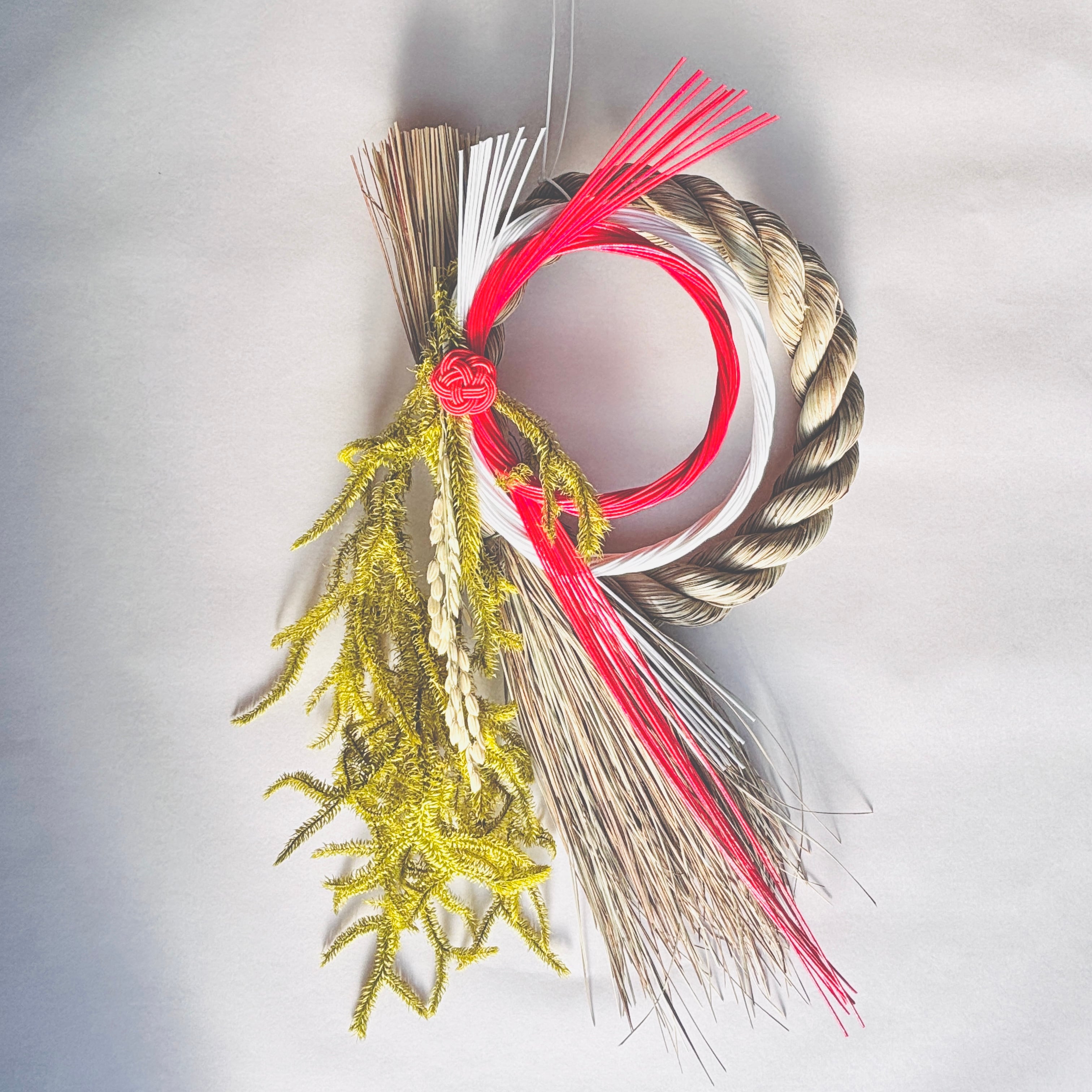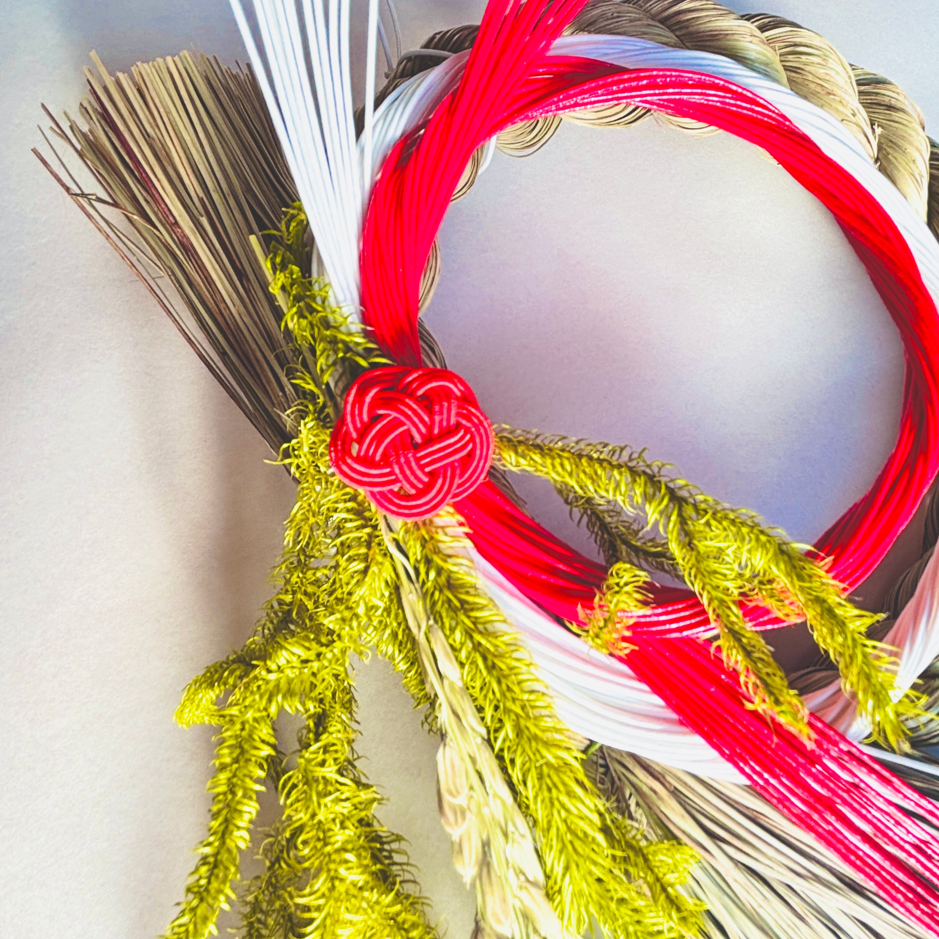 「循環」や「ご縁」を象徴する輪かざりに、紅白の水引で結んだ“重なる縁(環)”を添えました。
